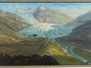 Als diese Ansicht um 1825 entstand, war der Gletscher im Vergleich zu 1777 rund 360 Meter weit vorgestossen. Es handelt sich um den ersten Vorstoss im 19. Jahrhundert, das Zungenende war nur noch etwa 250 Meter von Gletsch entfernt.