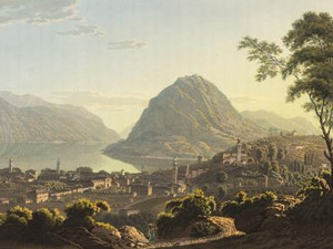 Hatte man in Chiasso die Grenze zu Österreich überquert, war man schon fast in Como. Die Lombardei gehörte zum Zeitpunkt der Entstehung dieser Ansicht um 1822 nämlich zum Lombardo-Venezischen Königreich, das wiederum Teil des Kaiserreichs Österreich war. In Como trafen die Güter, welche von Norden her über den Splügenpass kamen, auf solche von der Gotthardroute.